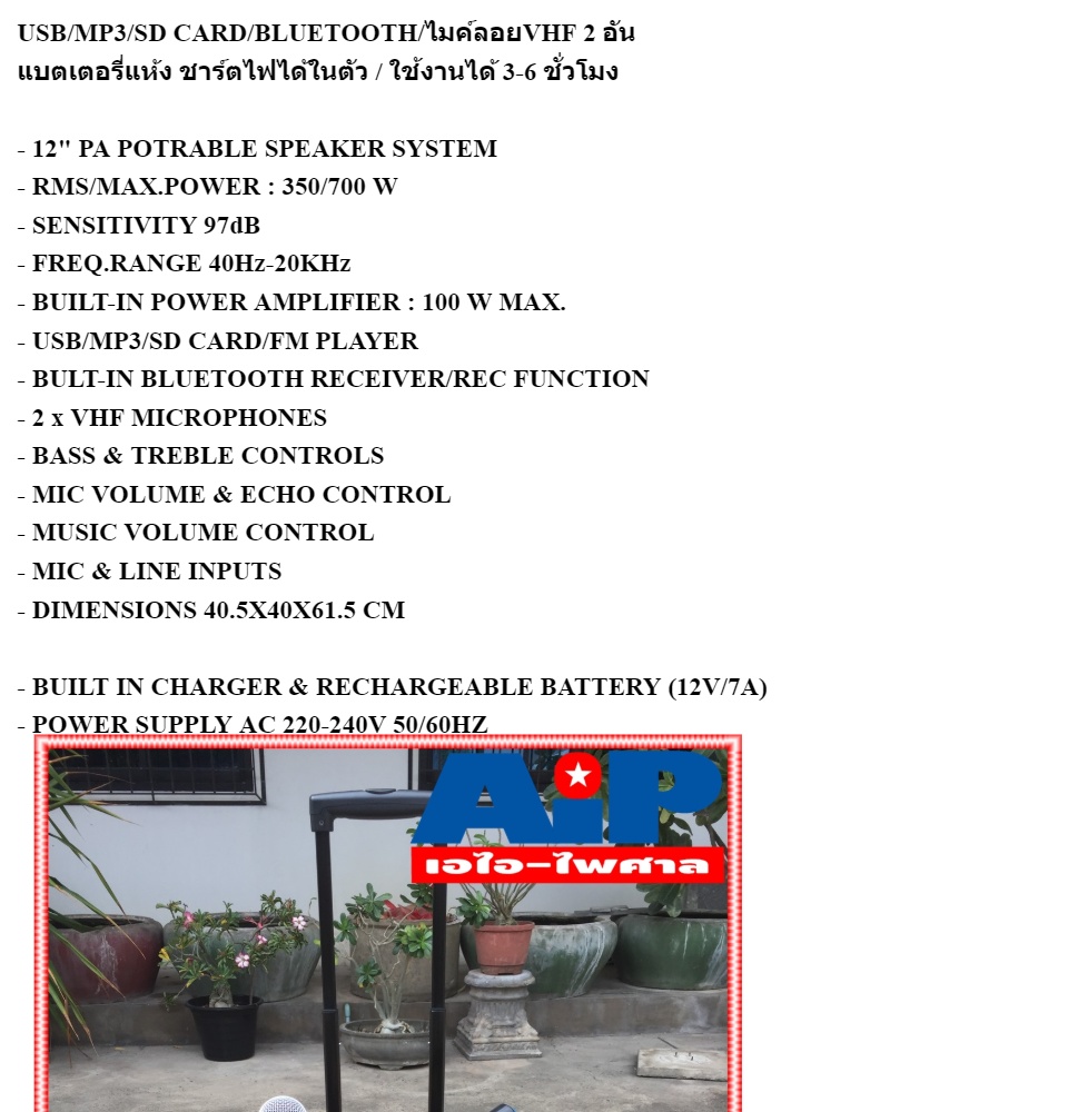 - 12" POTRABLE SPEAKER SYSTEM