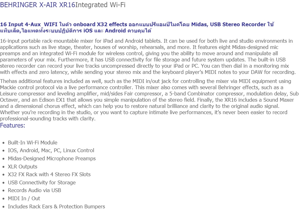หมวดหมู่ | BEHRINGER (DIGITAL MIXER) |