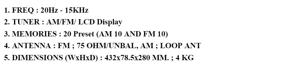 - TUNER : AM/FM/ LCD Display