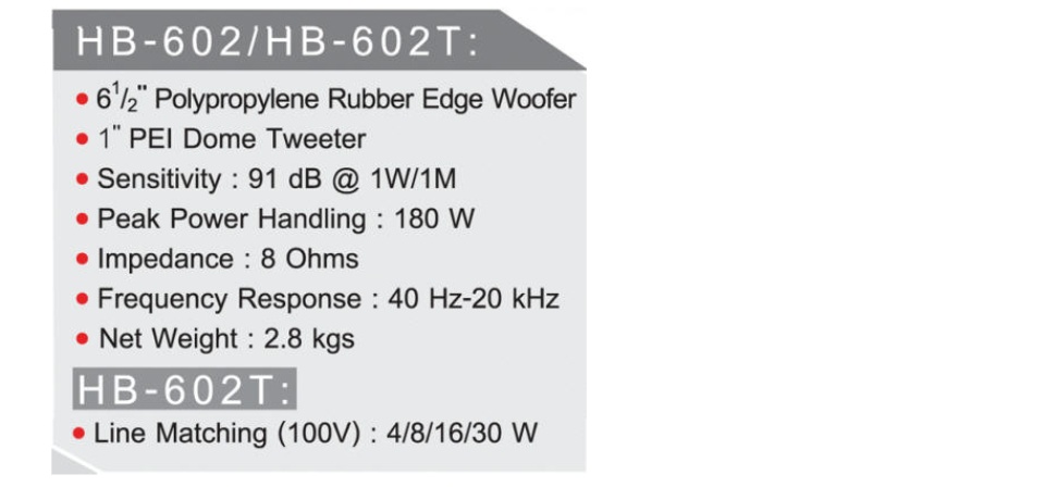 2. FREQ : 40Hz- 20KHz, HANDLING POWER : 180Wpeak @ 8 OHM