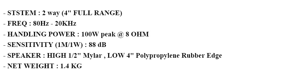 - SYSTEM : 2 WAY ( 4" FULL RANGE )