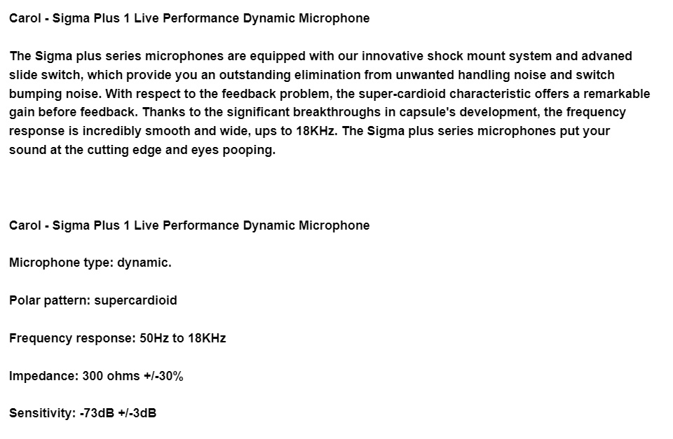 Carol - Sigma Plus 1 Live Performance Dynamic Microphone