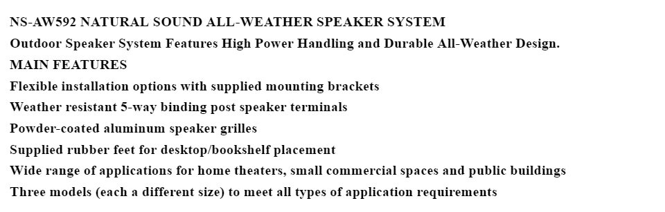 NS-AW592 NATURAL SOUND ALL-WEATHER SPEAKER SYSTEM