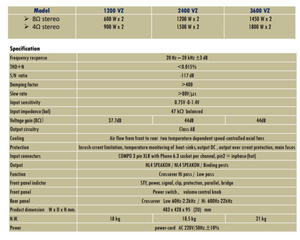 Wrms 8 ohm 1200 + 1200