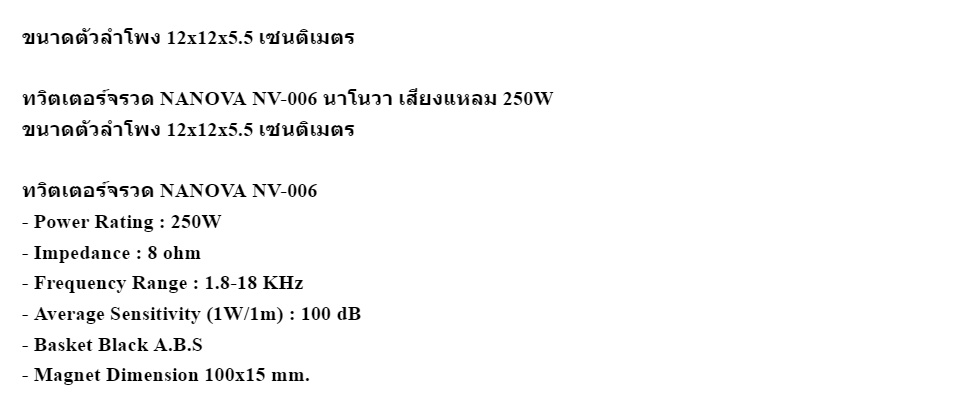 ทวิตเตอร์จรวด NANOVA NV-006 นาโนวา เสียงแหลม 250W