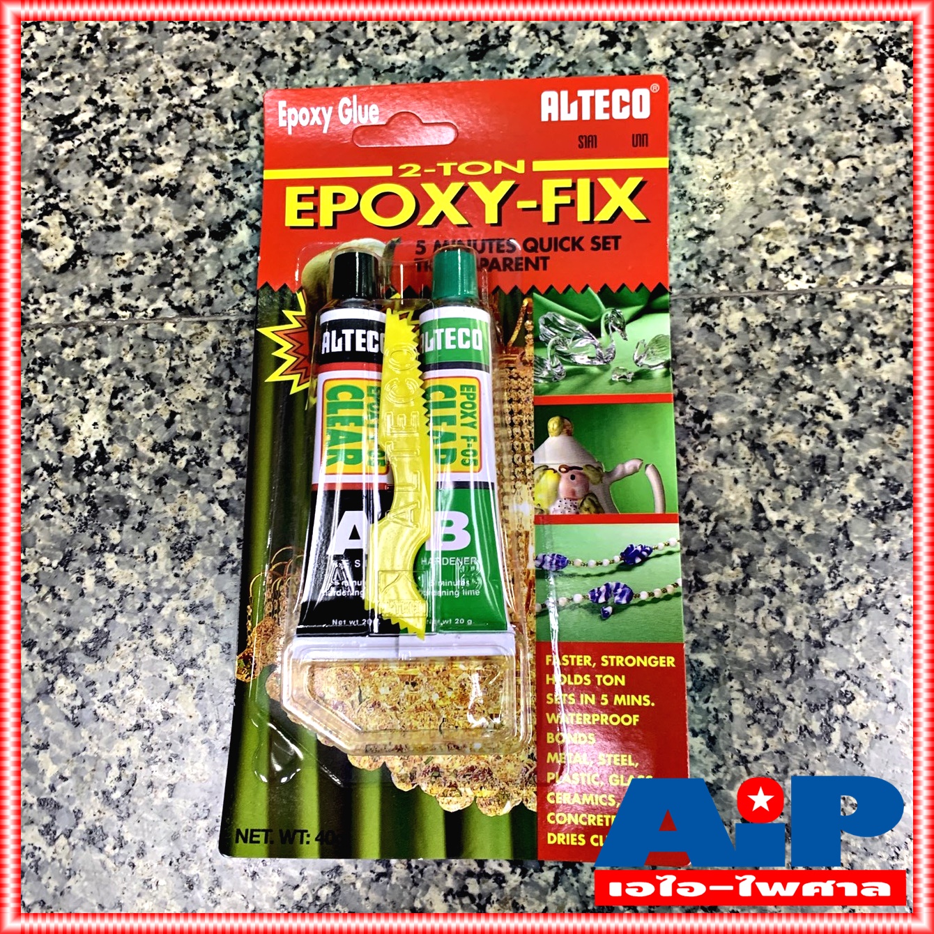 ยกโหล12แพ็ค ALTECO 40กรัม กาวหลอดคู่ 2ตัน สีใส ตราช้าง สูตรแห้งเร็ว ใน 5นาที กาว EPOXY FIX กาว กาวใส กาวติดลำโพง กาวติดว้อย ลำโพง กาวเอบี กาวอีพ๊อกซี อีพ๊อกซี่ สีใส กาวเอบี เอไอ-ไพศาล