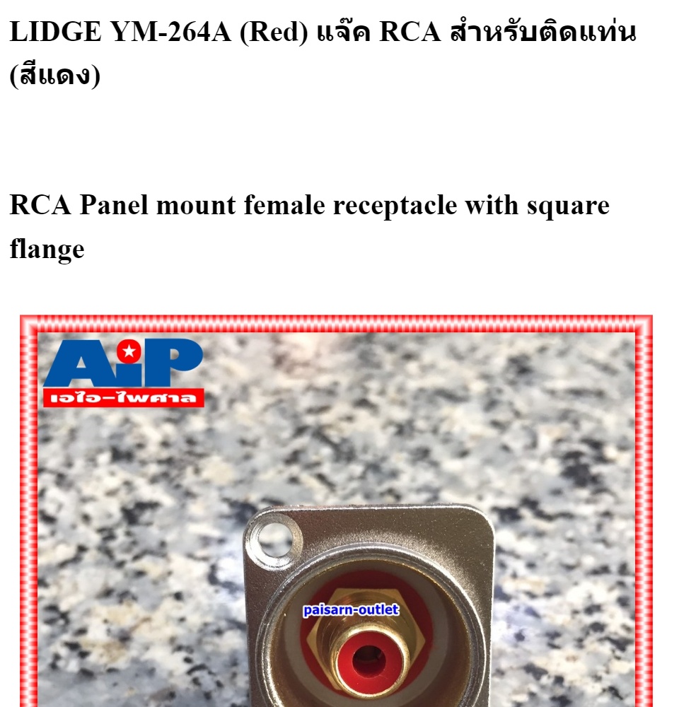 LIDGE YM-264A แจ็ค RCA ติดแท่น สีแดง YM264 A RCAตัวเมีย แบบติดแท่น แจ็คอาร์ซีเอ แจ๊ค RCA สำหรับติดแท่น เอไอ-ไพศาล
