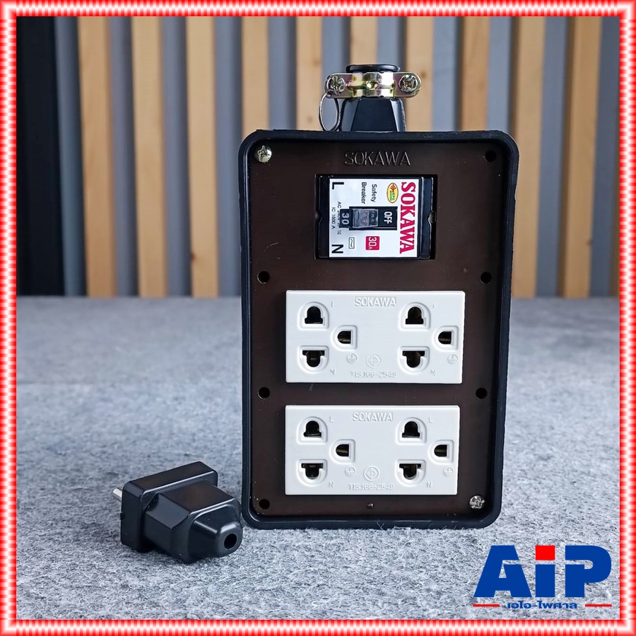 SOKAWA S-317 บล็อคยาง4x6 มีเบเกอร์ บล็อคยางพร้อมปลั๊กกราวด์คู่ S 317 S317 บล็อคยาง