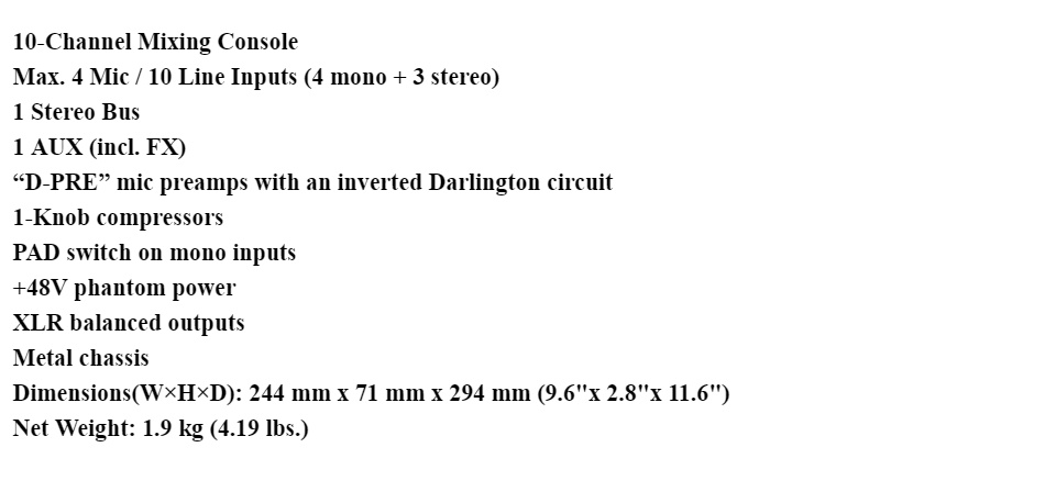 Max. 4 Mic / 10 Line Inputs (4 mono + 3 stereo)