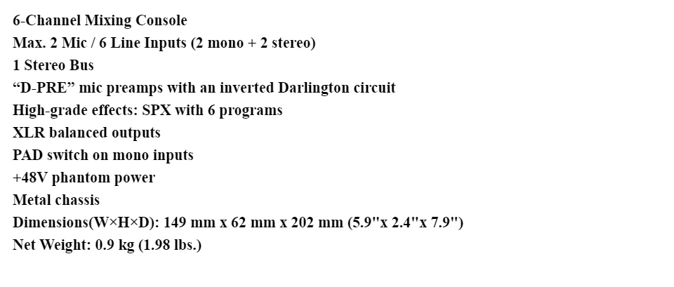 Max. 2 Mic / 6 ลาย Inputs (2 mono + 2 stereo)
