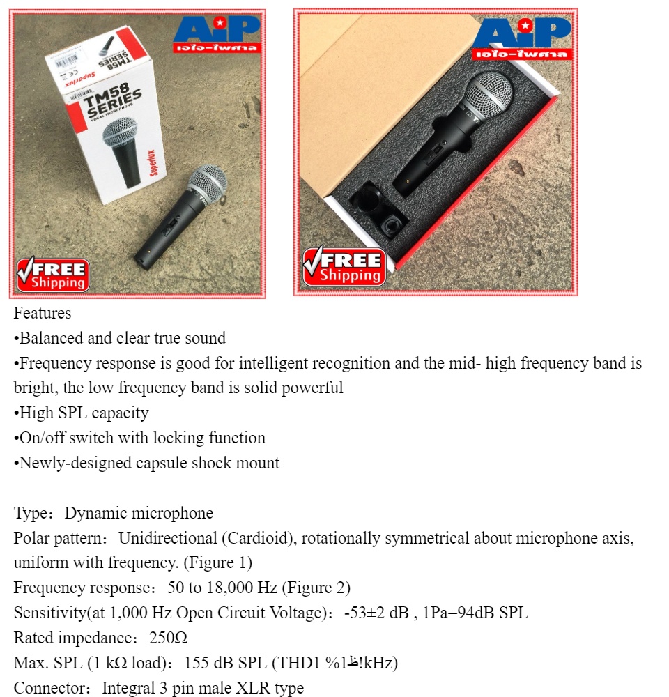 SUPERLUX TM58S ไมโครโฟนไม่แถมสาย(มีราคาพร้อมสาย วีดีโอรีวิวเทียบ ไมค์ราคาตัวละ4000บาท(ถึงจะไม่เหมือน100% แต่ก็คุ้มค่าคุ้มราคา100% สำหรับงบไม่มากนัก)