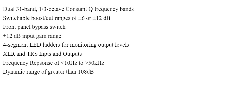 Dual 31-band, 1/3-octave Constant Q frequency bands