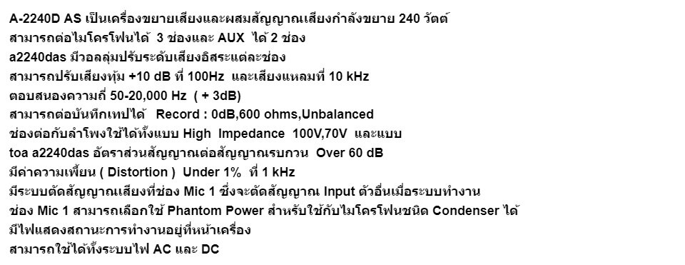 A-2240D AS เป็นเครื่องขยายเสียงและผสมสัญญาณเสียงกำลังขยาย 240 วัตต์