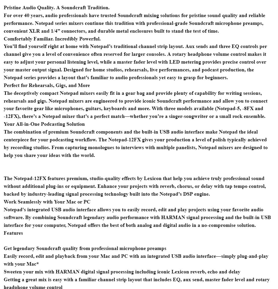SOUNDCRAFT NOTEPAD-12FX MIXER