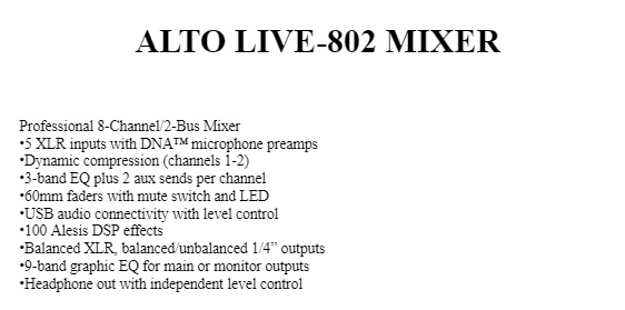 •Balanced XLR, balanced/unbalanced 1/4” outputs